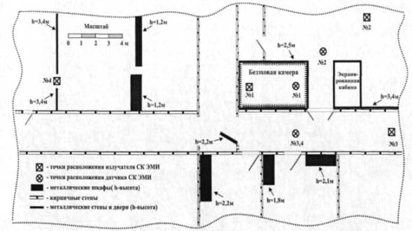 2. Схема помещений и расположения излучающей и измерительной аппаратуры