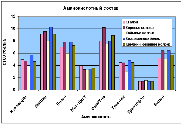 рисунка 1 аминокислотный состав комбинированного молока близок к эталону.