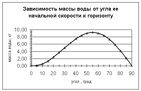 зависит только от начальной скорости потока жидкости и угла при условии, что