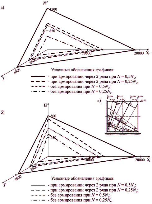 При дальнейшем снижении поперечной силы Q в 1,9 раза в армированных стенах указанные усилия Sс и Т