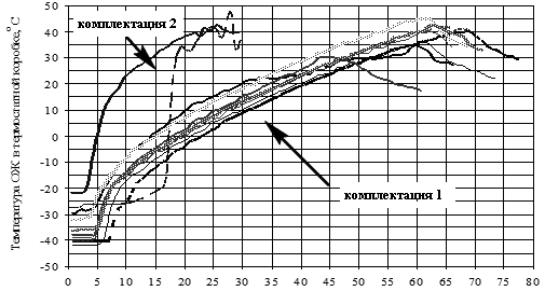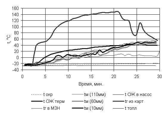 Рис. 4. Изменение температуры охлаждающей жидкости в зоне термостатов