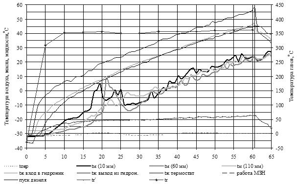 характерных температур в точках измерения в процессе подготовки дизеля к