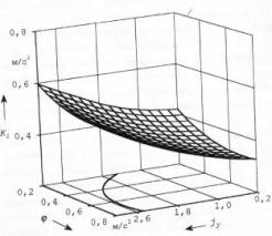 коэффициента информативности РУ от бокового ускорения и коэффициента сцепления