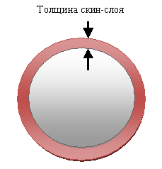 С повышением частоты электромагнитной волны, распространяющейся вдоль линии, в силу явления скин-эффекта происходит вытеснение тока к поверхности проводника (рис.3), что приводит к увеличению его удельного сопротивления, значение которого при частоте более 1 МГц для алюминиевого провода составит: