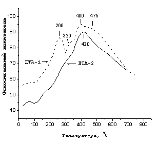 при ~ 3200С и ~ 4000С (рис. 2, кр. ДТА-1), связаны с началом