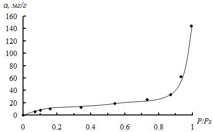 получена изотерма адсорбции паров воды (рис. 1), по которой установлены значения