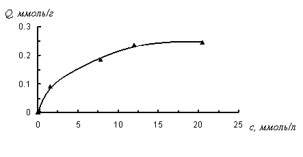 Рис.2. Изотерма адсорбции Q ионов Ni2+ из