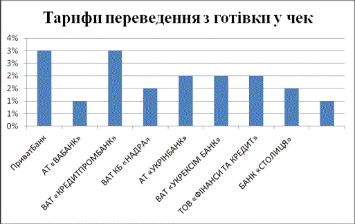 встановлені такі тарифи, щодо переведення у готівку з чеку зображені рис. 2.