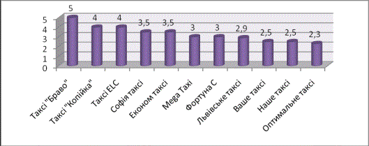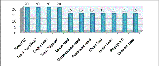 уваги бралася також вартість 1 км. проїзду таксі по Львову (рис. 2).