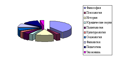 по различным гуманитарным областям знаний распределилось следующим образом: