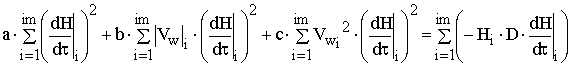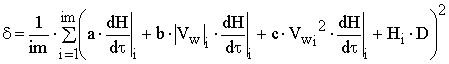 Для идентификации (3) (нахождения коэффициентов a, b, c) использовался метод наименьших квадратов. Величина суммы квадратов невязок d определялся по зависимости (4).