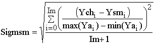 В качестве оценки используется среднеквадратичное отосительное рассогласование Ych(t) и Ysm(t) (Sigmsm).