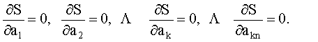 Значение функционала S будет минимальным при выполнении ряда условий (7).