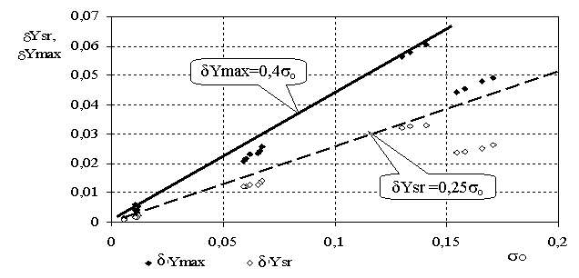 и средними (dYsr) значениями относительной