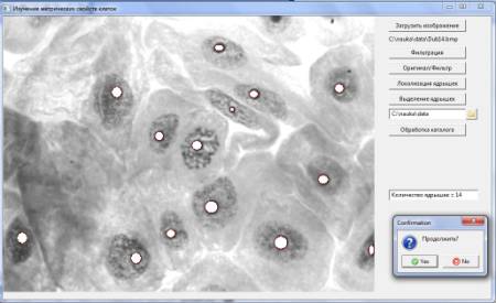 Рис.2. Программное решение задачи автоматической локализации ядрышек.