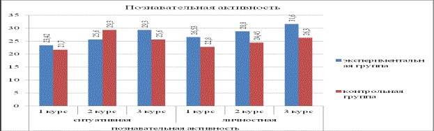 возрастания критериев «познавательная активность» (с 23,42 до 29,3
