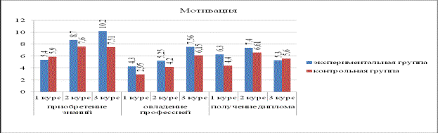 соответственно) и «мотивация» (по шкалам «приобретение знаний» - с 5,4 до 10,2