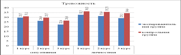 с 29,7 до 22,4 (ситуативная) при сравнении с контрольной группой с 31,1 до