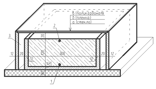 б – полиэтиленовая пленка; в – поликарбонат; 1 – точка