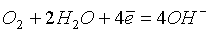 На кислородном электроде (катоде), роль которого играет насыщенный газообразным