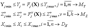 Для упрощения задачи распознавания область работоспособности обычно аппроксимируют вписанным или описанным брусом наибольшего объема. Тем самым допустимые пределы