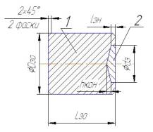 1 – основная часть (40Х), 2 – рабочая часть (ДИ23 5ХНМ),