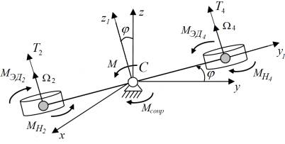 винтов, с угловыми скоростями wi, препятствует момент внешних нагрузок МHi