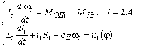 –индуктивность и активное сопротивление обмотки ротора; ui – управляющее напряжение, i – ток в обмотке электромагнита, wi, Wi - угловые скорости электродвигателя и пропеллера