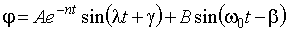 В - амплитуды свободных и вынужденных колебаний, g, b - соответственно начальная фаза свободных колебаний и сдвиг фаз