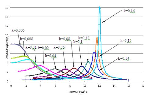 зависимость циклической частоты при различных коэффициентах усиления пропорционального