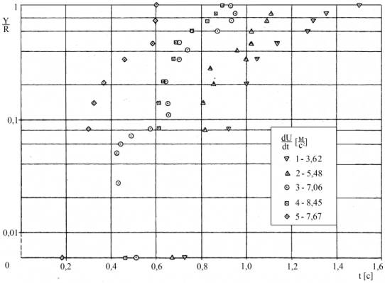 dU/dt. Значения 5 на рис. 1 относятся к переходному ускоренному, а остальные 1