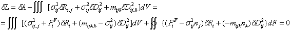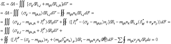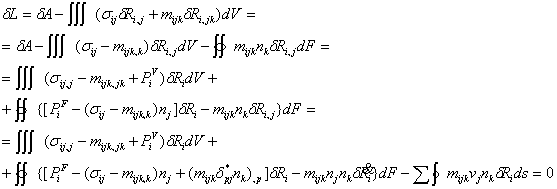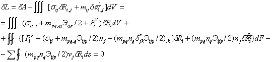 Вариационное уравнение теории сред Тупина получено из условия стационарности лагранжиана: