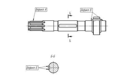 шлицев по толщине (А), износ шпоночного паза по ширине (Б), износ шеек вала под