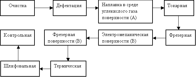 наплавка в среде углекислого газа поверхности (А); фрезерование шпоночного паза