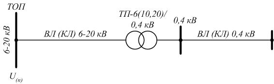 Рисунок 2 – Обобщенная модель участка распределительной электрической сети 6–10(20)/0,4 кВ
