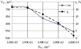 зависимость Voc и КПД от Nss