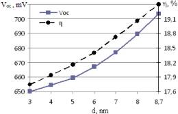 нм происходит рост параметра Voc от 650 до 703 mV и