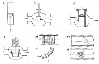 переміщенням поплавця на рис. 2, д. Кульковий витратомір показаний на рис. 2,