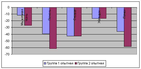 2 опытной группе. У животных 1 группы содержания кадмия в почках было на 35,71