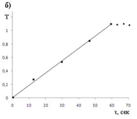 координатах γ – τ (а) и T – τ (б)