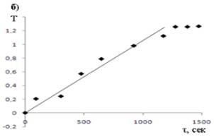 кислоты и зависимости безразмерного кинетического параметра (Т) от τ.