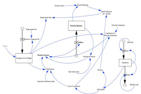 pension policy and to check with the help of System Dynamics is the introduction of the 5% notional component positively affect on the pension system.