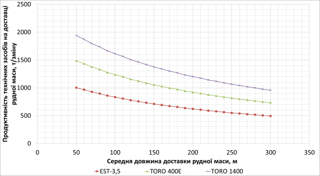 навантажувально-доставочних машин (ЕST–3,5; TORO 400Е; TORO 1400) від середньої