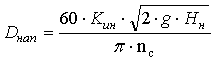 коефіцієнт швидкохідності ns, що у загальному вигляді записується: