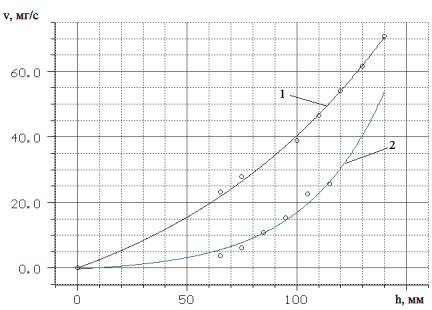 1 – дистилированная вода, h1=140 мм, h2=130 мм; 2