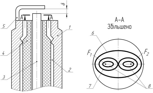 центральний електрод 3, екранований від корпусу ізолятором 4 (рис. 5). До