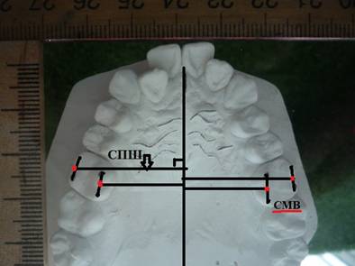 the upper dental arch through the rapid analysis method proposed by V.S. Gubanova [5]. In the
