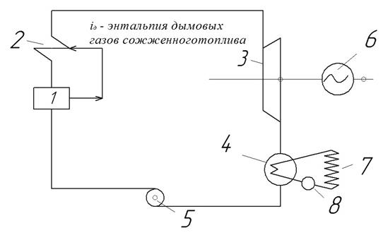 пара и тепла сжигаемого топлива и под напором, создаваемым насосом 8, поступает
