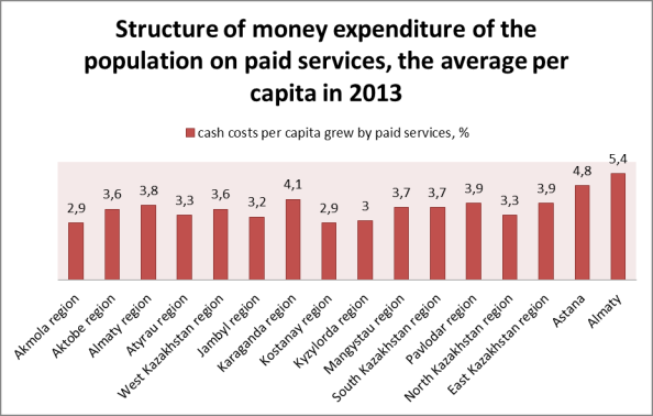spending money on paid services in the city of Almaty - 5.4%, while in other