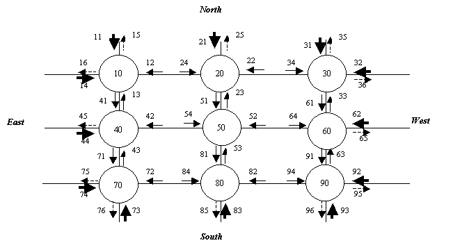 to intersection. Next nine segments simulate traffic flows at intersections.